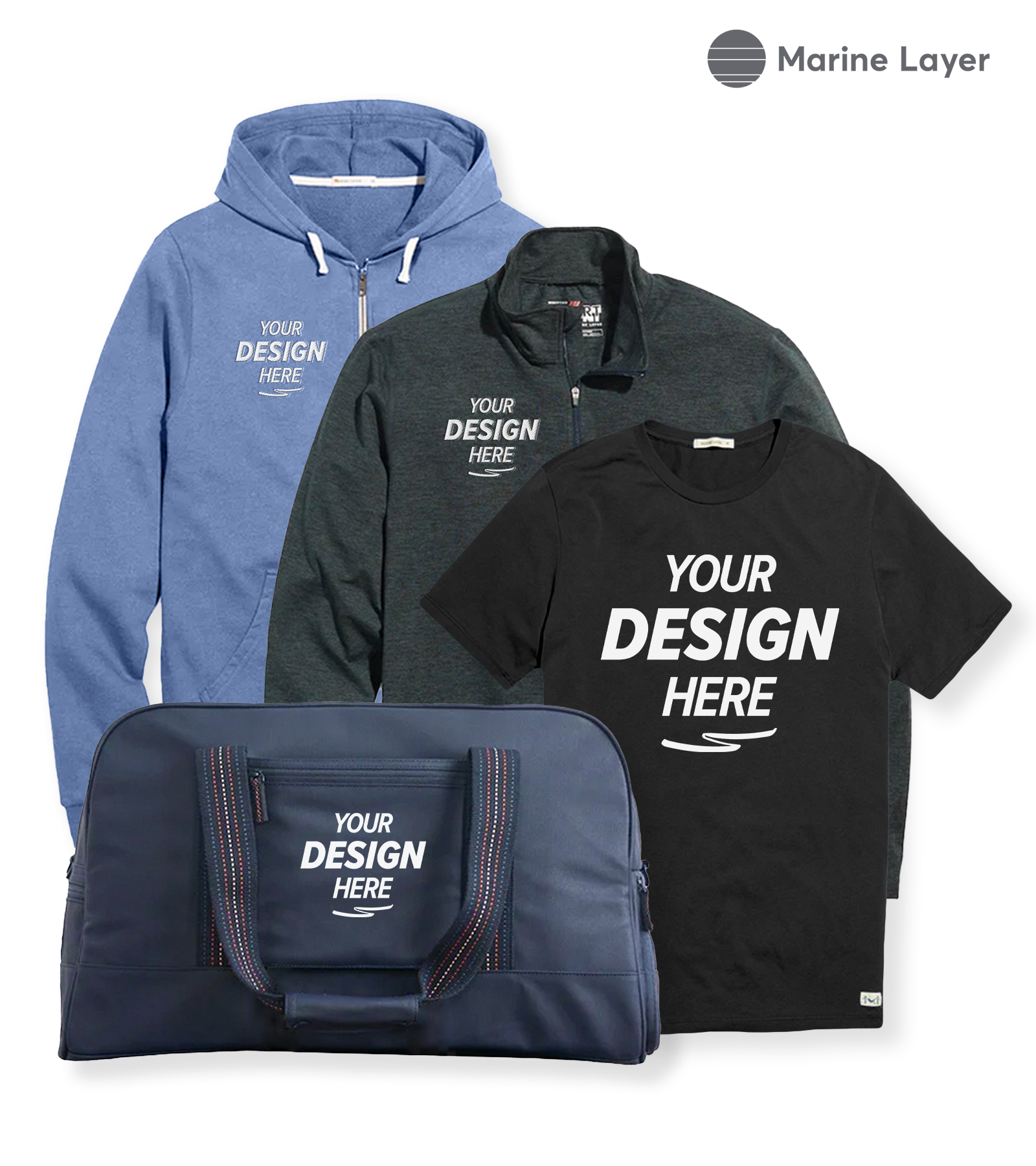 Personalize Marine Layer shirts, bags, and more with our easy-to-use Design Studio.