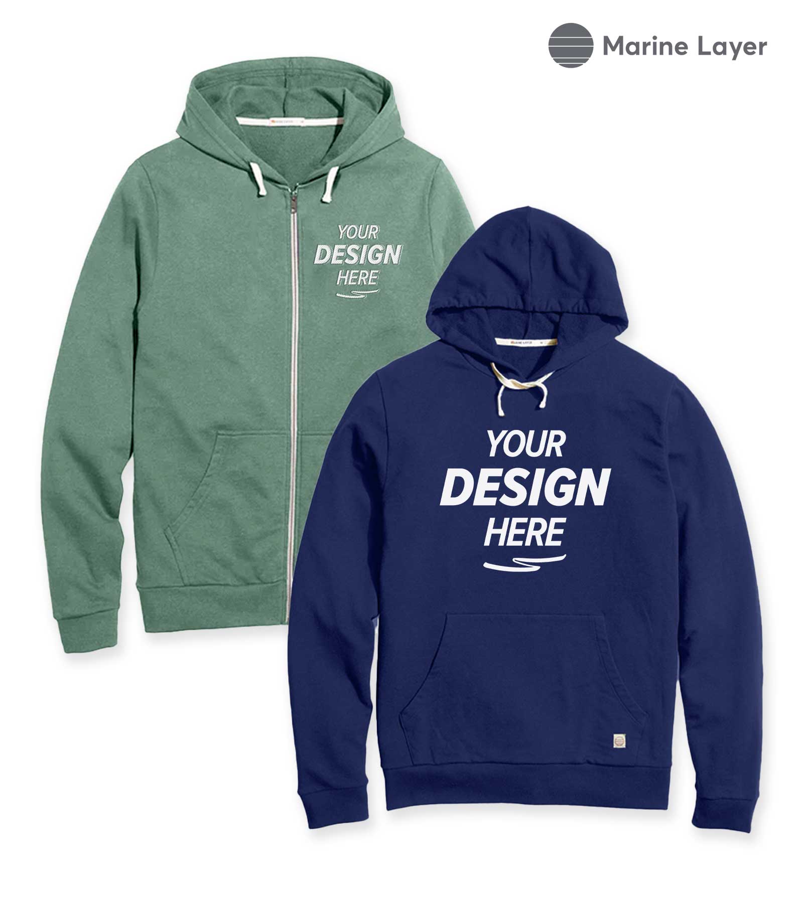 Designing your own personalized Marine Layer clothing is a breeze, thanks to our user-friendly Design Studio. To begin, simply select a product from the categories above such as t-shirts, hoodies, and hats, all made from the softest materials. Then, click ‘Start Designing’ and upload your own designs or use our free tools like our Design Wizard to create unique graphics and logos. You can experiment with different colors, fonts, and placement options until you're satisfied with the final look. Once your design is perfected, you can easily place your order and have it shipped directly to your doorstep in as little as 2 business days.